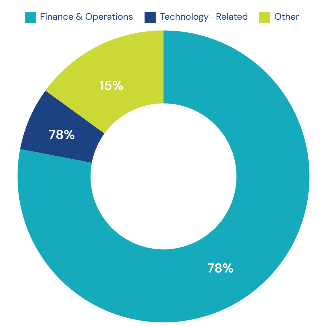 • 3,600 hours of advisory support, with 78% of all hours dedicated to finance and operations and the next largest portion (7%) to technology-related matters