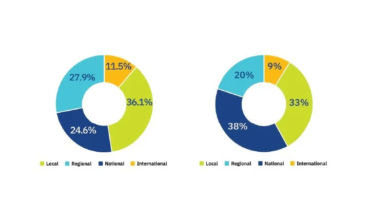 We saw higher representation at the local, regional, and international levels, than evidenced in the 2023 field scan sample data overall.